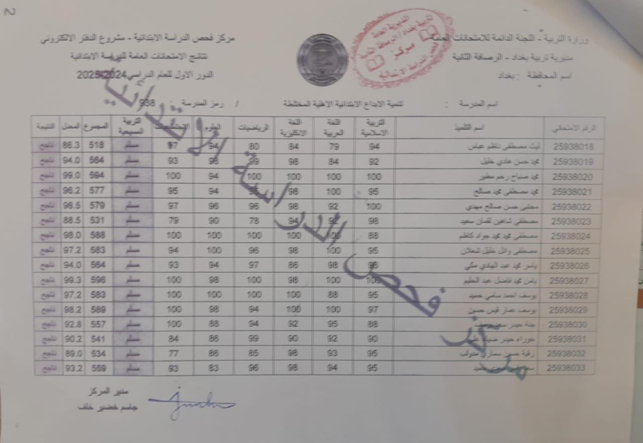 فيما يلي صور نتائج السادس الابتدائي الخاصة بمحافظة الرصافة الثانيه العراقية: