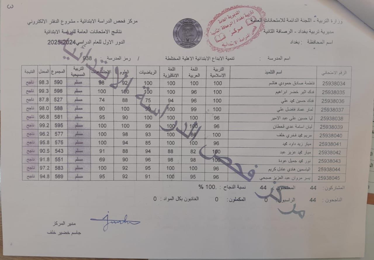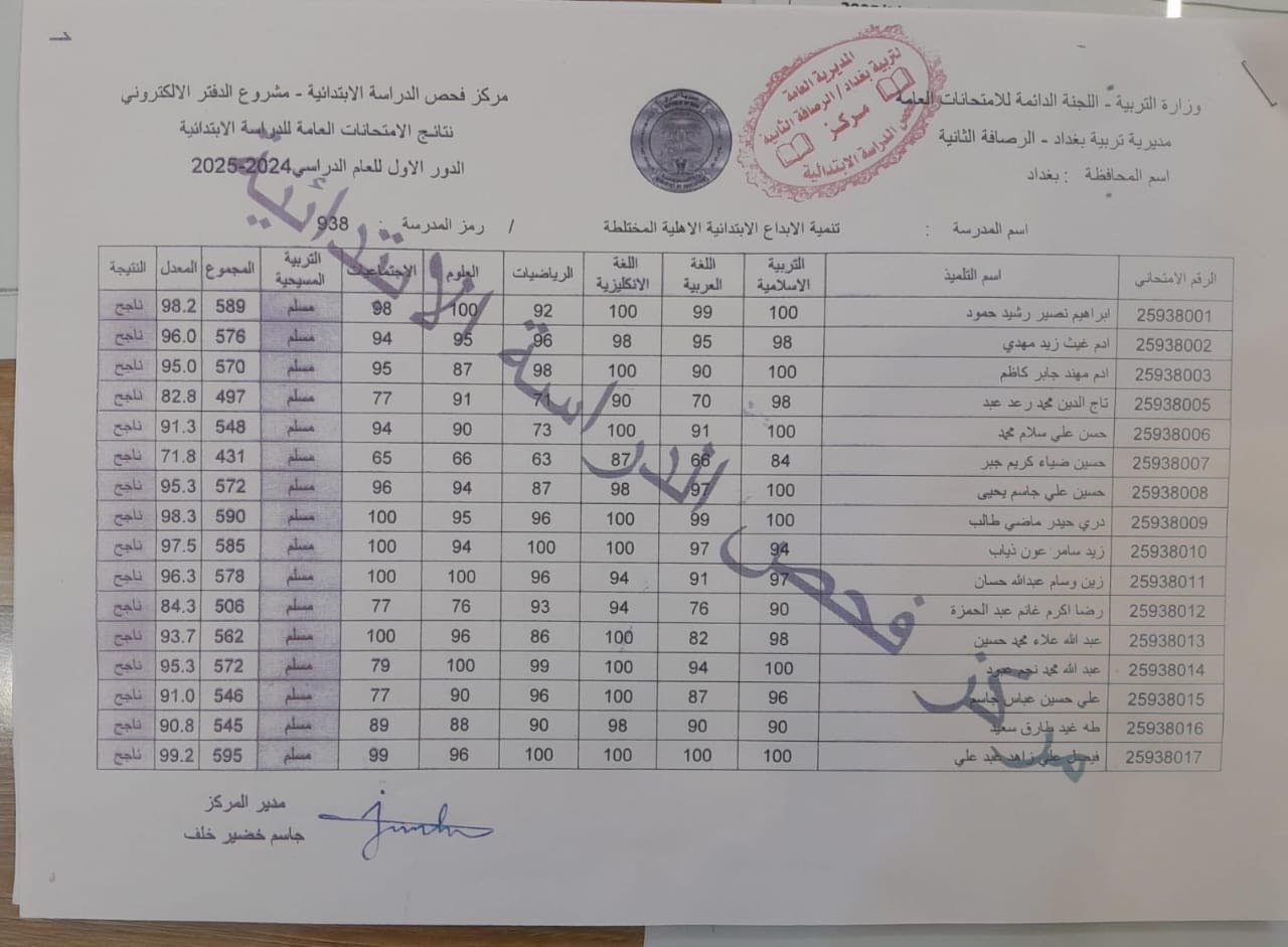 فيما يلي صور نتائج السادس الابتدائي الخاصة بمحافظة الرصافة الثانيه العراقية: